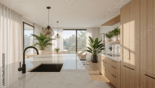 © ahmad, Fototapeta premium Modern Kitchen Design with Marble Island and Natural Light