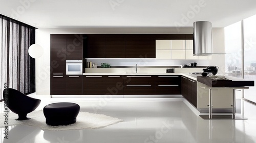 Fototapeta premium Modern kitchen interior decoration with sleek countertops, minimalist cabinets, and elegant lighting