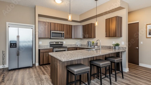 Fototapeta premium Modern kitchen interior design with island and stainless appliances
