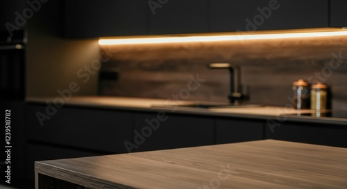 Obraz premium Modern kitchen interior with sleek design and warm lighting accents