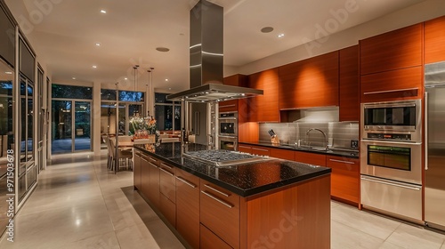 Fototapeta premium Modern Kitchen Interior with Stainless Steel Appliances and Granite Countertops