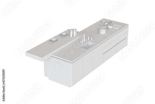Fototapeta premium modern kitchen isolated on white background, home furniture, 3D illustration,...