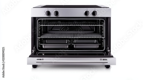 © Mimercy, Fototapeta premium Modern kitchen oven with multiple racks and pans ready for baking and cooking delicious meals and treats.