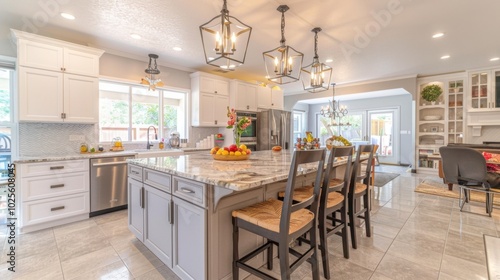 © buraratn, Fototapeta premium Modern Kitchen with Bright Accents and Ample Space