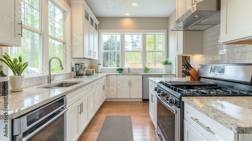 Fototapeta premium Modern kitchen with clean lines and sleek appliances perfect for cooking and...
