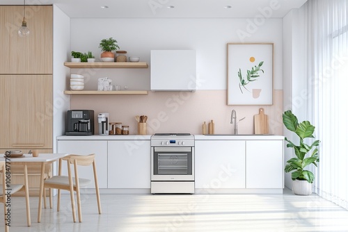 © Agus, Fototapeta premium Modern Kitchen with White Cabinets and Stainless Steel Appliances