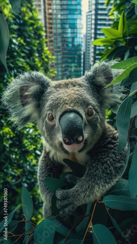Obraz premium Modern Koala in Jungle Cute Embracing the Tranquility of Nature Amidst