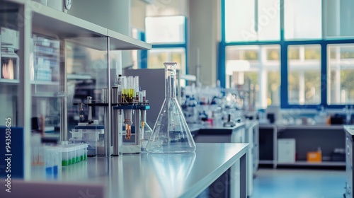 © SSTC AI Photo&Video, Fototapeta premium Modern laboratory interior with various scientific equipment, clean workstations, and storage shelves, ready for research and experimentation..