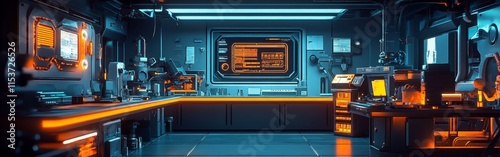 © gen_pick, Fototapeta premium Modern laboratory with glowing flasks