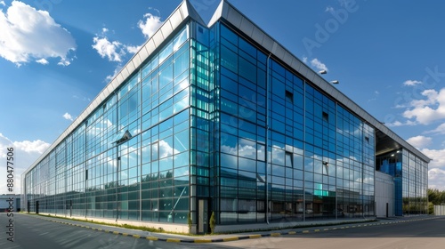 © Thi, Fototapeta premium Modern large building with a glass facade on an urban street