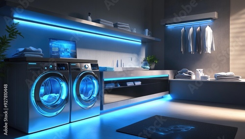 Fototapeta premium Modern laundry room with blue LED lighting.