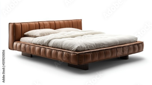 Obraz premium Modern Leather Bed, White Bedding, Studio Shot