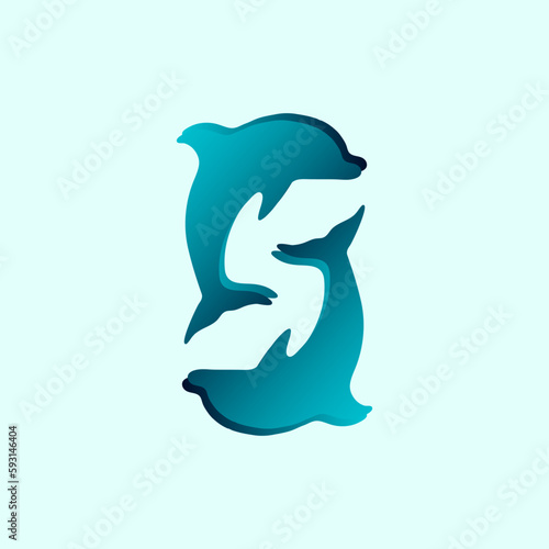 © Echo, Fototapeta premium Modern letter S dolphin logo illustration design