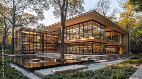 © Muamanah, Obraz premium Modern Library with Reflection Pool