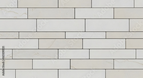 © Rajianto, Fototapeta premium Modern light beige rectangular stone tile wall texture. Seamless pattern of contemporary off-white stacked cladding background for design.