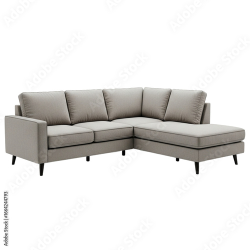 © Gelandangan, Fototapeta premium Modern light gray L shaped sectional sofa with chaise lounge isolated on a white background. PNG transparent