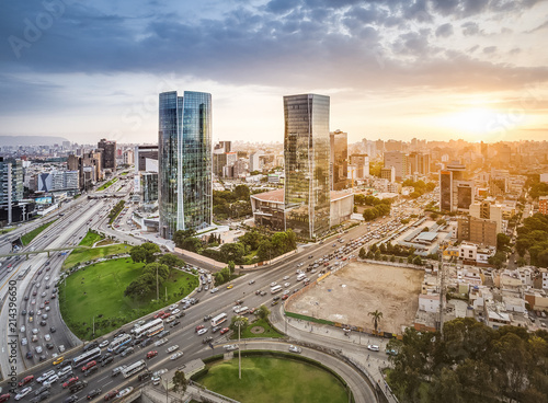 © christian vinces, Fototapeta premium Modern Lima pnoramica view at the sunset.