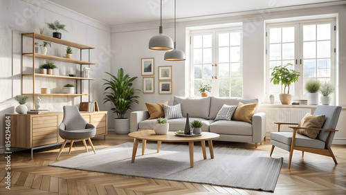 Fototapeta premium Modern living room, AI generated