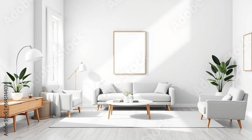 Obraz premium Modern Living Room Design with White Walls and Natural Light