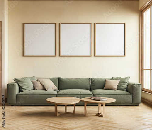 Fototapeta premium Modern living room featuring cozy green sofa