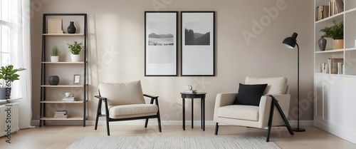 Fototapeta premium Modern Living Room Interior with Beige Armchairs and Stylish Decor