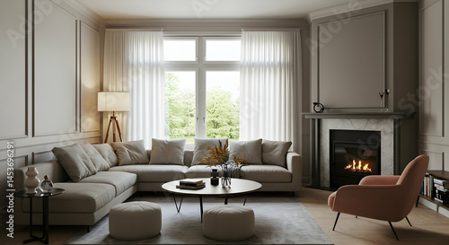 © sarinya, Fototapeta premium Modern Living Room Interior with Cozy Atmosphere and Natural Light