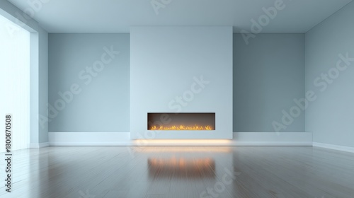 Naklejka premium Modern Living Room Interior with Minimalist Fireplace, Clean Design and...
