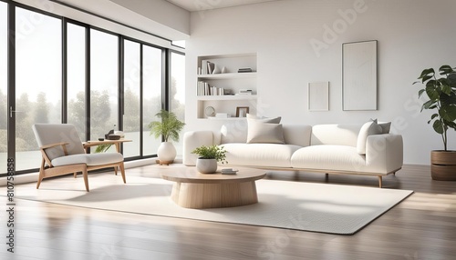 © Inna, Fototapeta premium Modern living room interior with sofa, coffee table and plants. AI generated