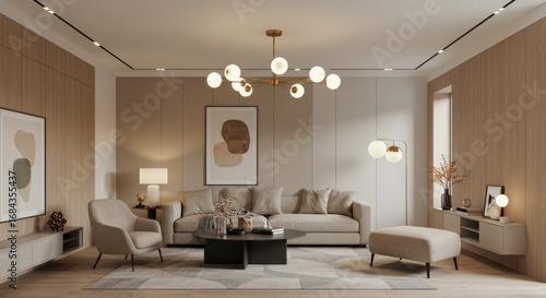 Fototapeta premium Modern Living Room Interior with Stylish Furniture and Decor.