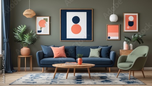 Fototapeta premium Modern living room interiors artistic decor and cozy environment photography