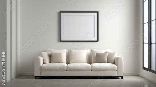 © nicole, Fototapeta premium Modern living room with blank black frame above sofa