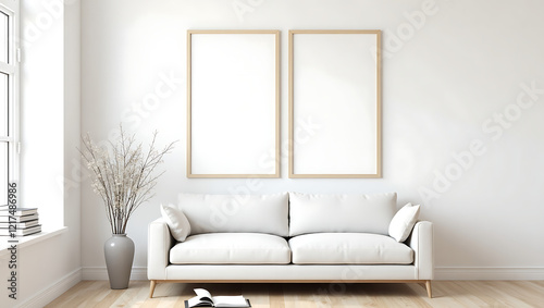 Fototapeta premium Modern Living Room with Blank Horizontal Poster Frame