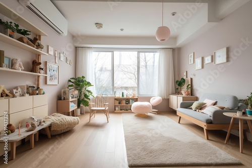 Fototapeta premium Modern living room with bright sunlight. Generative AI.
