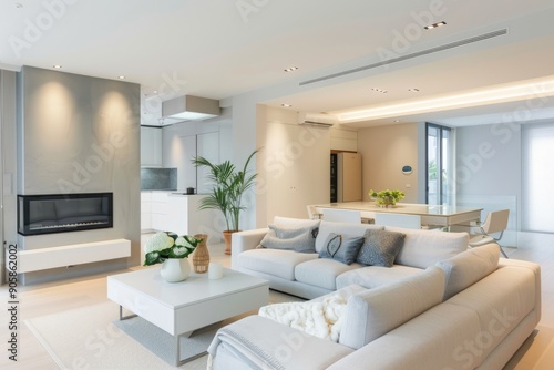 © kitipol, Fototapeta premium Modern living room with cozy seating area and minimalist decor