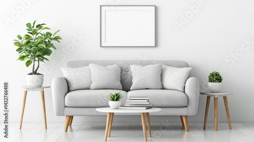 Fototapeta premium Modern Living Room with Cozy Sofa and Decorative Plants