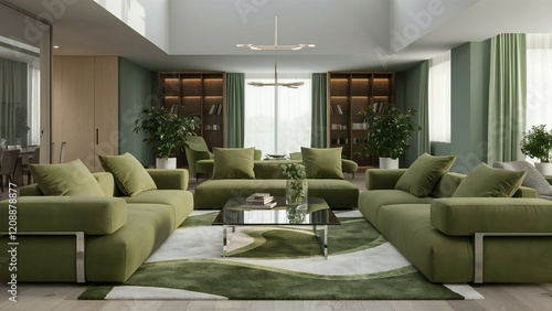 © KaziMasum, Fototapeta premium modern living room with fireplace