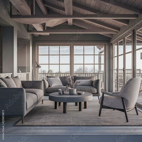 Fototapeta premium modern living room with fireplace