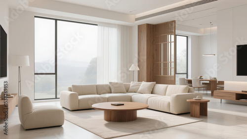 © wanxin, Fototapeta premium modern living room with fireplace