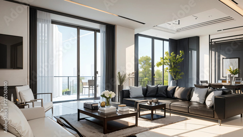 Fototapeta premium modern living room with fireplace