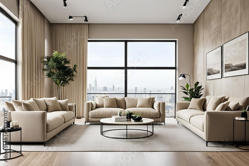 Fototapeta premium modern living room with fireplace
