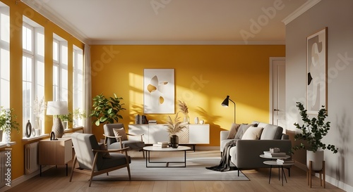 Fototapeta premium Modern Living Room with Mustard Yellow Wall Paint