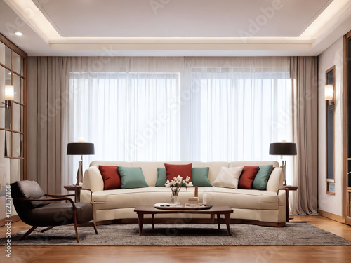 Fototapeta premium Modern living room with natural light and elegant decor featuring a...