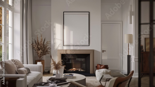 © Cedric, Fototapeta premium modern living room with sofa and fireplace