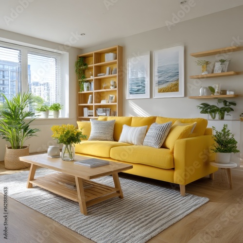 Fototapeta premium Modern living room with yellow sofa