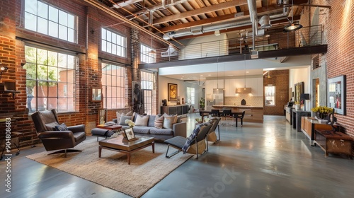 Fototapeta premium Modern Loft Interior with Exposed Brick Walls
