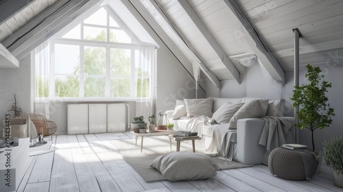 © jongaNU, Fototapeta premium modern loft living room interior design with sofa. 3d illustration concept