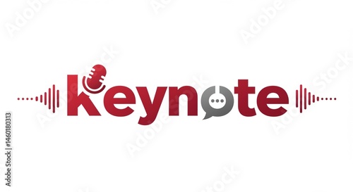 © Aurora Aesthetics, Fototapeta premium Modern logo design featuring the word "keynote" in bold, rounded, lowercase deep red sans-serif letters. The letter 'o' is replaced by a stylized microphone icon or a simple speech bubble