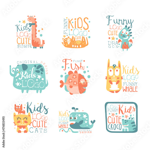 Fototapeta premium Modern logo design for kids with animals and fantasy characters
