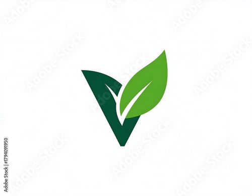 Fototapeta premium Modern logo featuring a green leaf and a stylized letter V