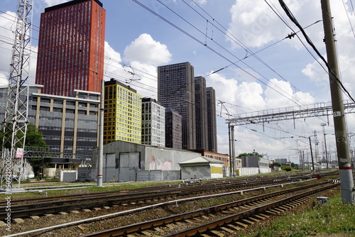 © ibWR111, Fototapeta premium Modern looking buildings along city railroad